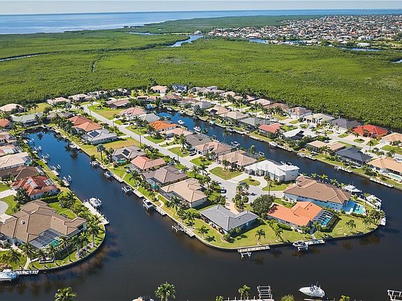 Experience the ultimate Florida waterfront lifestyle in this beautifully maintained 3-bedroom, 2-bath, 2-car garage home in Punta Gorda Isles, a premier boating and golf community. Designed for comfort and entertainment, the open floor plan flows seamlessly to an expansive outdoor living space featuring a stunning Saltwater pool with waterfall, therapeutic spa, and serene canal views—perfect for sunsets and year-round relaxation. Boaters will appreciate the 45’ dock equipped with electric, water, a 30-amp outlet, and a 13,000-lb electric lift, offering effortless access to Charlotte Harbor and beyond. Built to post-2005 hurricane codes, this home delivers peace of mind with enhanced structural integrity . Elegant features include 16 feet of pocketing sliders that open fully to the lanai, hurricane accordion shutters, remote-controlled hurricane and privacy screens, remote-control blackout shades, and stylish updated lighting. The interior showcases freshly painted walls, new bedroom carpeting, KitchenAid stainless appliances, double ovens, a Rheem Performance Platinum water heater, Aqua Pure and Culligan water softening systems, and a Trane A/C paired with a Built Right pool/spa heat pump and Pentair ScreenLogic2 automation. Additional upgrades include an epoxy-coated garage with Gladiator storage, polyaspartic-coated driveway and pool deck, paver walkway to the water, decorative concrete curbing, new pool screening, Manabloc plumbing, irrigation, and security system. New boat lift motors and aluminum pads ensure years of effortless boating. Surrounded by upscale homes and immaculate landscaping, this residence reflects exceptional pride of ownership and long-term value. Located moments from Fishermen’s Village, the Punta Gorda Yacht Club, historic downtown dining and shopping, and I-75 access, it blends privacy with convenience. Optional Twin Isles Country Club membership enhances the lifestyle for golfers. Move-in-ready and meticulously cared for, this waterfront retreat offers unmatched quality, comfort, and Southwest Florida living at its finest—Welcome home.