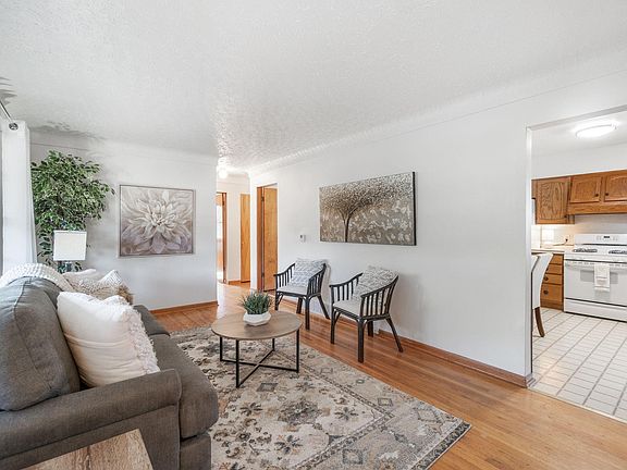 So nice to come home to! This lovingly maintained 4-bedroom home with 1.25 baths and a 2-stall garage is nestled on a spacious lot with an expansive backyard. The property exudes pride of ownership, boasting a brand new roof and siding that enhance its curb appeal and durability and offer peace of mind for years to come. As you step inside, you'll be greeted by a warm and inviting living room with original hardwood floors, cove ceiling, an abundance of natural light and fresh paint throughout. The kitchen has ample storage, overlooks the backyard and has enough room an for an eat-in dining area. Continuing through the main floor you'll find 3 good sized bedrooms, 2 baths plus the ease and convenience of a main floor laundry. Head to the lower level which is super clean and features a 4th bedroom with egress window, lots of storage space and plenty of room for future finish. The private backyard space offers endless possibilities, from gardening to outdoor entertainment. The 2 stall garage provides plenty of room for parking and storage and the large storage shed has enough room for all your tools and equipment, keeping your garage clutter-free. This home is where memories are made. Schedule a showing and end your home search today! All measurements approximate.