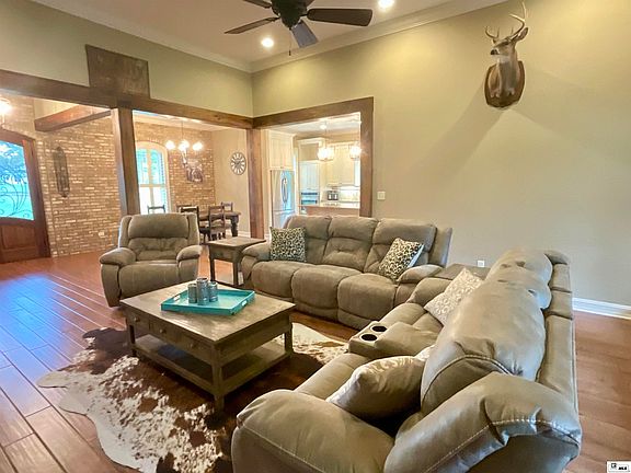 This remarkable estate blends timeless Southern architecture with exceptional craftsmanship. Sitting on five acres and tucked gracefully off the road the inviting front porch and beautiful landscaping creates a picture perfect first impression worthy of a Southern Living cover. Inside, the home offers 3 bedrooms and 2.5 baths. A light filled sunroom is the perfect place to watch all the deer eat and play, while the converted third garage bay with its on mini split and half bath adds flexible living space ideal for guests, an office, or work out space. The property also has a 40x50 shop that was constructed with exceptional attention to detail. Outfitted with 3" reinforced vinyl fiberglass insulation throughout, it's plumbed for three sinks, toilet, and a shower. The floors were finished by Ark-La-Tex Concrete coatings and feature a chip system that has a 15-year warranty. A separate 20x20 storage building adds even more convenience...