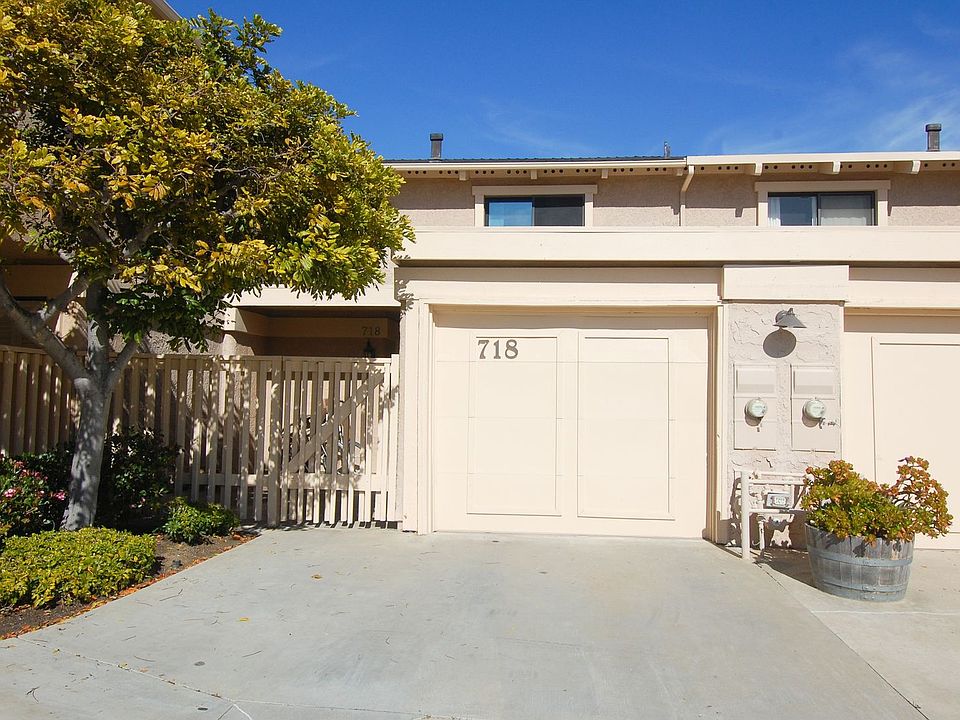 Great location in Presidential Heights I!! This 2 bedroom, 1.5 bath condo features an open floor plan where the kitchen looks out to the spacious living area that has double glass sliding doors, opening to a private patio that backs to a huge greenbelt offering a park-like setting. Kitchen is upgraded and includes granite countertops, a breakfast/bar counter, stacked washer and dryer, and all the appliances. Direct access to your 1 car garage, half bathroom, and 2 large closets complete the main level. Upstairs you will find 2 spacious bedrooms with vaulted ceilings, an upgraded bathroom with walk-in shower, and a balcony off one of the bedrooms. A wall-mounted TV is included in the other bedroom along with a walk-in closet. The community features pools and is close to beach, golf, shops and dining!