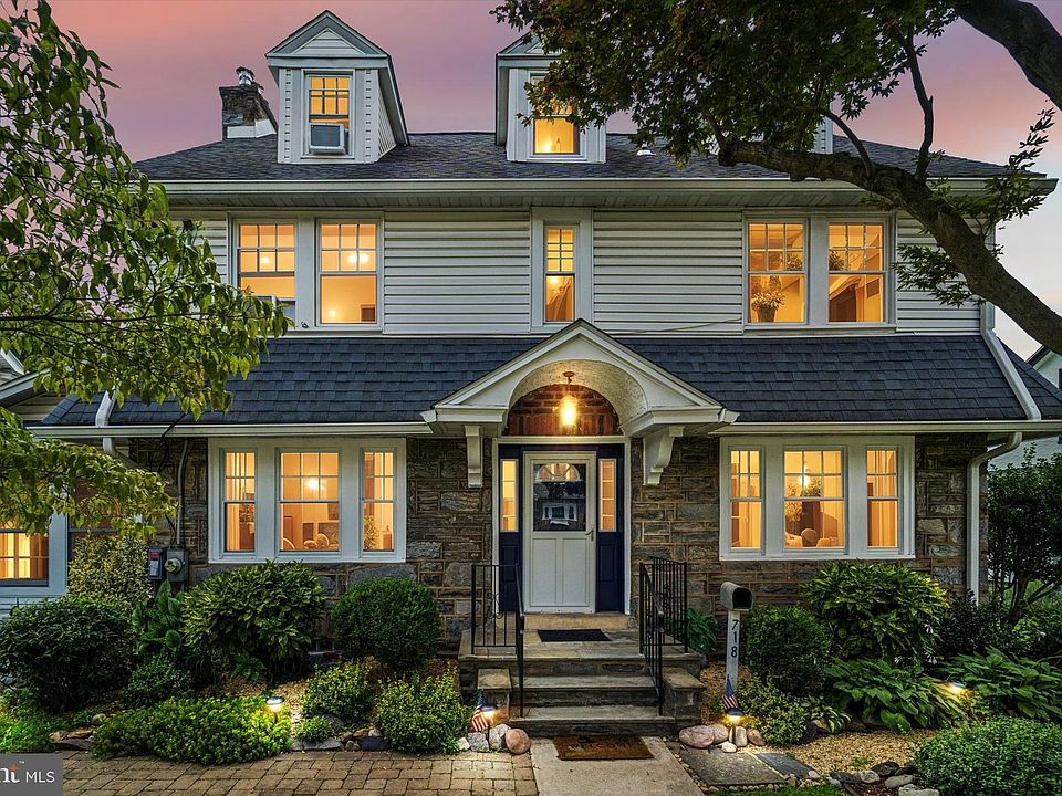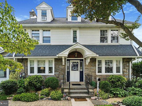 This Wonderful property is back on the market. Definitely find out more about this one! Lots of info to share. This beautifully maintained stone and brick Center Hall Colonial offers timeless charm and modern comforts across three spacious levels with a Brand New Fenced in rear yard. With 6 bedrooms, 3.5 baths, and over 2500 square feet of living space Plus additional basement space, this home is ideal for multi-generational living or anyone seeking room to grow or has any type of hobby. Step into a gorgeous ceramic tile entry foyer featuring crown molding and French doors that open into the formal dining room and family room, both adorned with brand-new hardwood flooring. The living room is a warm and inviting space, boasting a striking stone fireplace with a wood-burning insert, custom wood dental mantle, crown molding, and dual French doors leading to a bright sunroom filled with windows. The formal dining room features abundant natural light, chair rail detailing, crown molding, deep window sills, and charming split doors connecting to the kitchen. The kitchen blends beauty and functionality in every detail with oak cabinetry, ceramic tile floors and backsplash with decorative accents, granite countertops, stainless steel appliances, a 5-burner gas stove with grill burner, double windows over the sink, pantry storage, vaulted ceilings, and a skylight. The home includes a rear living area with private access—previously used as a handicap-accessible suite—complete with a full ceramic tile bath, pedestal sink, walk-in shower, and large linen closet. Upstairs, the second level offers four generously sized bedrooms, all with hardwood flooring and ceiling fans, plus a full ceramic tile hall bath with a shower stall and with a seat. The third floor adds even more flexibility with additional large bedrooms, a ceramic tile hall bath with a tub/shower combo, and ample attic storage. The partially finished basement expands your possibilities with space currently used as a hobby room or office, bonus and storage rooms, a large half bath, and a laundry area. Outdoors, enjoy beautifully manicured landscaping, paver walkways, garden areas, a rear patio, and an oversized shed off of The spacious driveway which provides abundant off-street parking. Additional features include original high baseboards, numerous ceiling fans, and exceptional storage throughout. This is a great location with easy access to shops, restaurants, Center City and major arteries for all your travel needs. Don’t miss your opportunity to own this character-rich, move-in ready home with space and style to enjoy! Note: Seller IS having the lift removed in rear of home.