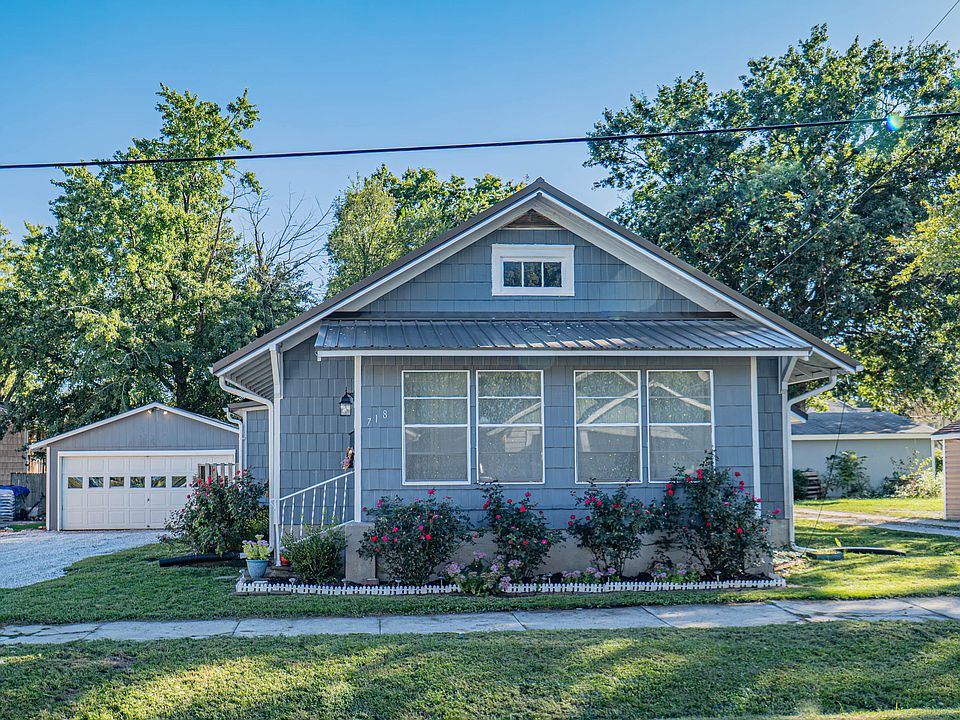 Spacious 2-bedroom, 2-bath home with 1,323 sq. ft., featuring a 2-car garage and a handy shed. Enjoy a very large master suite with attached bathroom (2024) and an inviting enclosed front porch. Updates include a newer metal roof (2022), central heat & air (2022), water heater (2020), and newer flooring throughout. Modern fixtures and kitchen appliances convey with the home. Perfect as a starter home—truly above the rest!