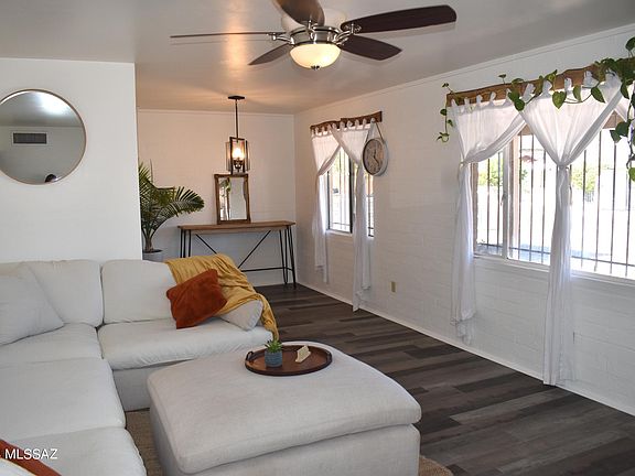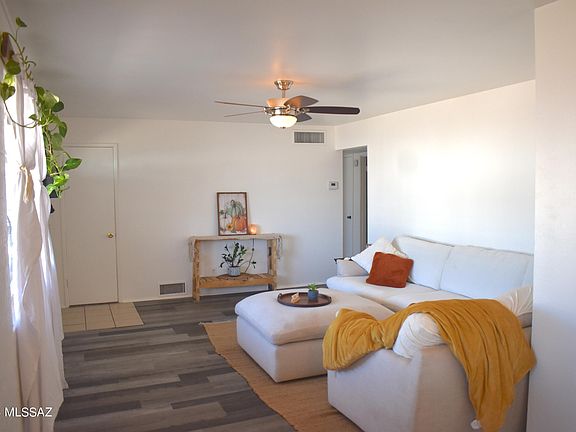 Move-in ready home! Newer shingle roof installed in 2022, newer water heater, entire house replumbed in 2010 by a licensed plumber. Fresh paint inside and out. Newer flooring in the living area, and kitchen, new carpet in the bedrooms. Lots of kitchen storage. 4th bedroom could be an office/den/workout room . Ceiling fans in every room. Front covered patio and full length covered back patio. Big fully fenced yards. 2 car carports. 1 storage shed, & 1 work shed with electrical. Newer washer and dryer included. Great family home or rental property. Ideal location, near the Tucson Mall, Rillito River walkway, easy access to I-10, and only 4 miles from the UofA.