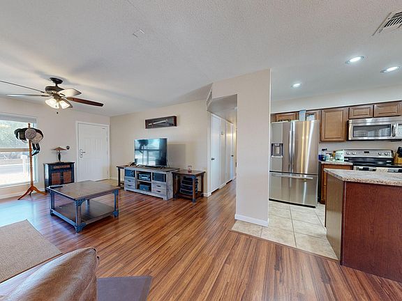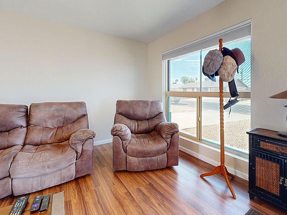 This immaculate home has so many upgrades for energy efficiency, safety and comfort. You will find 16''blown in insulation, radiant barrier, sunscreens over dual pain windows, Cool Roof roofing, sound deadening windows in master bedroom, upgraded doors and Boss security screens, utilities run underground from alley with added piping for future upgrades, 40 amp (32 useable easy upgrade), Level 2 carport EV charge ready, wood carport ceiling with sensing light, large bathroom, large laundry room and huge back yard. The back yard is a blank canvas ready for a pool, RV garage or making it your relaxing oasis. All furniture and appliances convey except washer and dryer. OH!! NO HOA either! Grab your agent and check out this gem today!