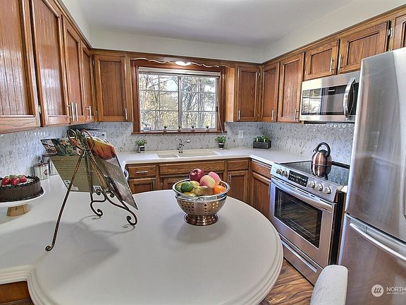 This extremely well maintained 2400 sqft Scenic Hill home sits on a spacious and gated 1/2 acre+ AND includes an additional 9000 sqft lot that offers ample room for relaxation, entertainment and outdoor activities. You'll feel like you're living in your own secluded paradise. As you step inside, you are greeted by an interior that boasts new floors and fresh paint throughout. The kitchen features Corian counters with a seamless sink and new stainless steel appliances. A roomy 2 car garage doubles as a shop and an additional covered carport. An impressive piece of property lies outside. A beautiful 1/2 acre manicured yard with an additional 9000 Sqft adjacent lot. Spectacular views of the valley and even a peekaboo view of Mt. Rainier!