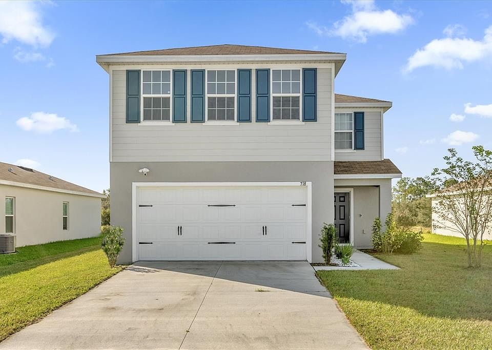 One or more photo(s) has been virtually staged. Discover refined living at 718 Eagle Landing Blvd, a beautifully crafted 2023 two-story residence offering 3 bedrooms, 2.5 bathrooms, and an exceptional blend of modern elegance and natural serenity. Located in the quiet and meticulously maintained community of Eagle Landing, this home provides a peaceful retreat surrounded by lush landscapes, calming views, and the timeless charm of true Florida living. Step inside to an inviting, contemporary layout enhanced by sleek finishes, abundant natural light, and thoughtfully designed living spaces. The main floor features modern tile flooring, creating a clean and cultivated backdrop for both everyday living and stylish entertaining. Plush carpeting is reserved for the second level, bringing comfort to the private bedroom spaces. The second-floor hosts three generously sized bedrooms, including an elegant owner’s suite designed for relaxation, complete with spacious proportions and serene views. Outside, your private backyard sanctuary awaits, offering unobstructed nature views, breathtaking sunsets, and complete privacy with no rear neighbors. It’s the perfect setting to unwind, entertain, or simply enjoy the peaceful ambiance that sets this home apart. Ideally located just minutes from Publix, parks, scenic walking paths, and water recreation for boating and kayaking, this residence offers a harmonious balance of convenience and tranquility. And with LEGOLAND only a 10-minute drive away, the surrounding area provides endless enjoyment while maintaining the calm and exclusivity of the community. If you’re seeking refined comfort, modern design, and a lifestyle immersed in beauty and quiet sophistication, 718 Eagle Landing Blvd is a home you won’t want to miss.