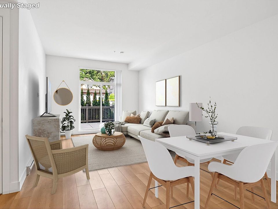 Welcome to this extra-large 1 bedroom + den ground-floor home in the heart of Coquitlam! This bright and airy 728 sq. ft. residence features soaring ceilings and expansive windows that flood the space with natural light. The functional layout includes a spacious den—perfect for a home office or guest space. Step outside to your own private, oversized patio, ideal for entertaining, gardening, or simply enjoying outdoor living. Built by renowned developer Mosaic Homes, this property offers exceptional quality and timeless design. Conveniently located close to everything—shopping (including IKEA), transit, parks, recreation, and some of the area’s best schools. A perfect combination of comfort, quality, and unbeatable location!