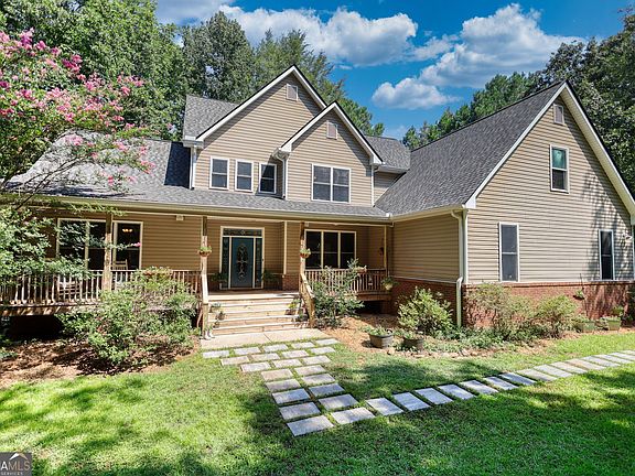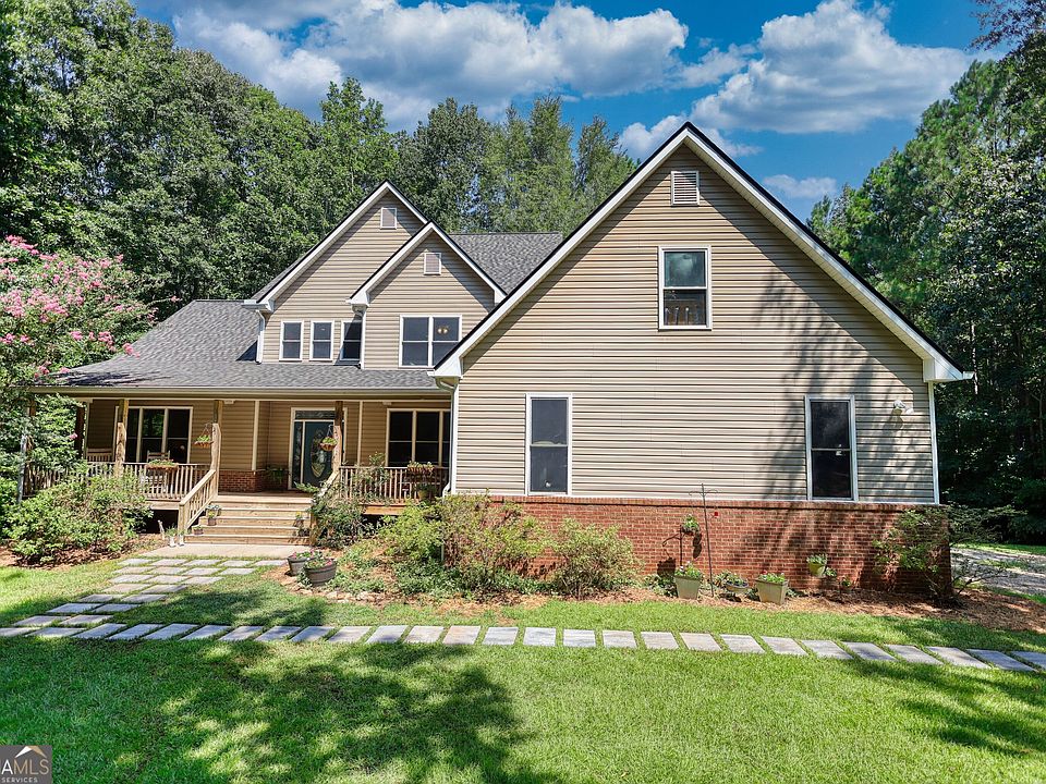 Entertainer's Dream on 5 Private Acres - Custom Built, One-Owner Home. Welcome to this one-of-a-kind, custom-built retreat designed for comfort, entertaining, and serene living. Privately tucked away on 5 acres, this spacious home offers unmatched tranquility while remaining just 15 minutes from the heart of Covington. As you stroll up the walkway a large rocking chair front porch invites you to relax and soak in the peaceful surroundings and morning sun. Inside, you're greeted by a two-story foyer with real hardwood floors and a formal dining room, flowing seamlessly into the impressive two-story living room filled with natural light and huge windows throughout. The show-stopping floor-to-ceiling stone wood-burning fireplace features dual chimneys, with provisions already in place to add a second fireplace in the basement. A whole-house sound system adds to the ambiance, perfect for entertaining. The open kitchen is a chef's delight with abundant cabinetry, a pantry, breakfast bar, coffee station, and breakfast area with French doors opening to the back deck. Enjoy your morning coffee overlooking the wooded, fenced backyard, ideal for pets and outdoor gatherings. The main level also features a spacious primary suite with new high-end carpeting and French doors leading to a luxurious bath complete with his-and-hers vanities, whirlpool tub beneath a picture window, a new subway tile shower, and dual walk-in closets. A guest half-bath in the foyer and a mudroom/laundry area connect to the oversized two-car garage. Upstairs, you'll find two large bedrooms plus a huge bonus room-perfect as a fourth bedroom (which is the current situation), media room, or playroom. New carpet throughout, plus a full bath with a double vanity. The full, partially finished basement offers incredible flexibility-with structural steel beams already in place for future open-concept finishing. A fully insulated space with a home office, gym area, and stubbed-in plumbing for a bathroom make this a dream space to customize. The basement has poured concrete walls, waterproofing, and an exterior French drain, ensuring year-round comfort and dryness. Plenty of storage, in the basement you'll also find that the seller has already purchased a good bit of sheetrock to get that basement finished! Peaceful setting far off the road with unmatched privacy. This home blends thoughtful custom details, modern upgrades, and timeless charm-perfect for families, entertainers, or anyone seeking space and serenity. Septic has been pumped and new drain fields installed and home is scheduled for drilling of a brand new well in the next couple weeks. Roof is two years old. Easement already in place for driveway although seller currently uses shared drive with adjacent property. Schedule your private showing today-homes like this don't come around often!