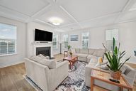 Gas fireplacePrivacy fenceFire pit areaLarge island with seatingReverse osmosis water filterQuartz countertopsNice and bright sunroom