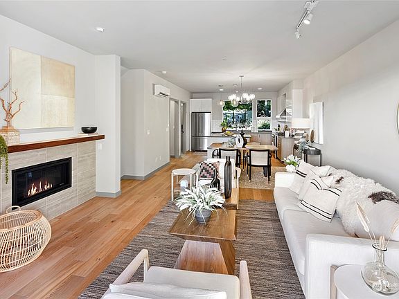Brand new construction built by highly reputable Fairbank Construction. Modern style townhome right in town and a stones throw to the ferry, waterfront, parks, trails, shopping and restaurants. Large windows bring in southern light. Gorgeous kitchen with quartz center island, lots of cabinet space and a place to put your BBQ off of the kitchen with the nearby back deck. All appliances included. Move in ready! Propane fireplace in the living room with a large front deck right off of the living room. Two primary suites with radiant floor heating in the bathrooms and split heat pumps for heating and cooling in the bedrooms. EV ready in HUGE two car garage. Low HOA dues. Want something that you can lock and go? This is your answer.