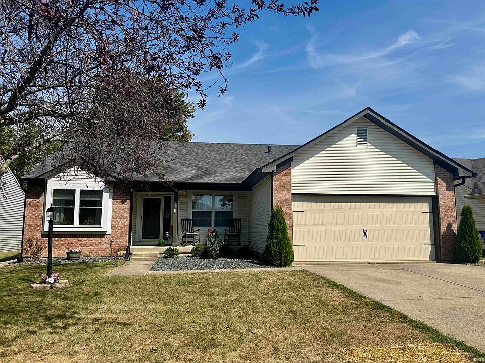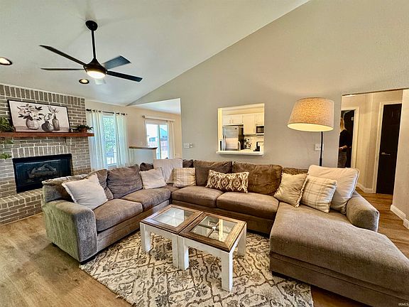 Welcome home to this 1582 sq.ft. ranch style home offering 3 beds and 2 full baths, plus a full partially finished basement with additional living space and possible 4th bedroom plus abundant storage. The open concept design features a spacious great room with vaulted ceilings, new flooring throughout and a cozy gas fireplace and flows seamlessly into the dining area and galley-style kitchen. The kitchen showcases crisp white cabinets, quartz countertops, a tile backsplash, pantry, and comes fully equipped with stainless steel appliances. The large primary bedroom suite includes a walk-in closet along with an ensuite full bath featuring a soaking tub, separate stand-up shower, and dual-sink vanity. The split bedroom floor plan places the additional 2 bedrooms and a full bath on the opposite side of the great room for added privacy. Outside, you will find a fully fenced backyard, 2 car attached garage, and peace of mind for years to come with a brand new roof and gutters!