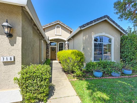 Beautifully updated single-story situated on a large corner lot in Folsom's desirable Ridgeview community, this home offers 3 bedrooms, 2 baths, 1,800 sq. ft. of open living space, and a 3-car garage. With high ceilings, stained concrete floors, and abundant natural light, this home feels both spacious and inviting. The upgraded gourmet kitchen boasts custom cabinetry, granite counters, designer backsplash, stainless steel appliances, custom lighting, and an eat-in nook with slider access to the backyard patio, perfect for indoor/outdoor living. Open living room with gas fireplace pairs with a formal dining room -- perfect for entertaining. The primary suite is spacious and includes a cedar-lined walk-in closet, shower enclosure and jetted tub. Ceiling fans in all 3 bedrooms and in the living room. Additional highlights: laundry room includes washer and dryer, kitchen includes a refrigerator, new RUUD HVAC system installed in 2020 and Bradford White water heater in 2021. Enjoy the private backyard with mature landscaping, water fountain, pergola and large side yards with room for garden beds. Ideally located near parks, Lake Natoma, top-ranked schools, shopping, and dining. No mello-roos tax and low HOA. Don't miss this rare Ridgeview gem -- schedule your showing today!