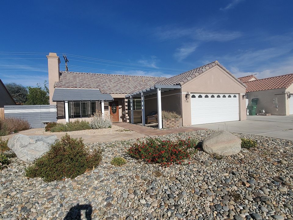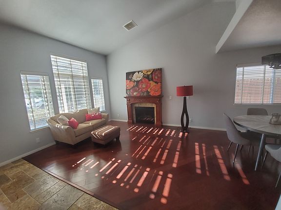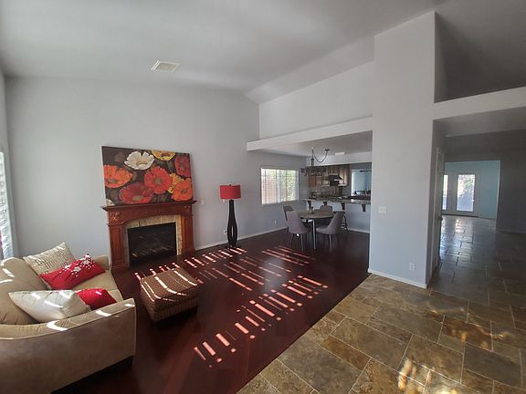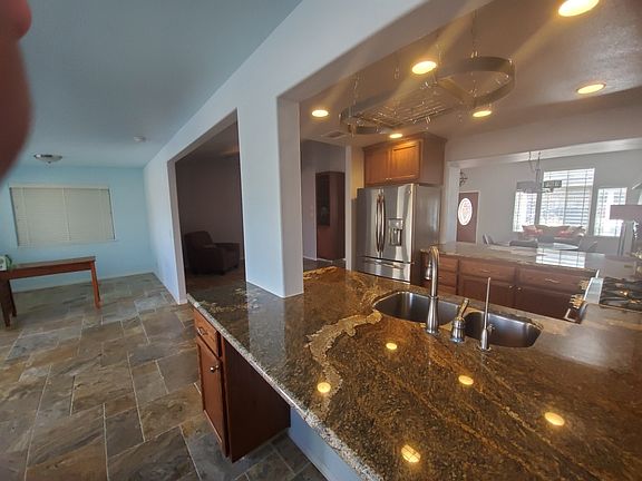 BEAUTIFUL & TURN KEY! Fabulous layout with fresh exterior paint! Xeriscaped with brick paver walkway. Step into a living room with elegant multi-grained Travertine tile and rich wood laminate flooring. Living room fireplace is gas with vaulted ceilings that flows neatly into the dining space. Kitchen and family share the same large area with a roomy extension to the rear. Kitchen features granite counters, sparkling oven/cooktop, dishwasher, stainless GE Profile refrigerator, wood cabinets, and recessed lighting. Master bedroom with vinyl plank flooring, cool agua hues, and a deep and wide 9'x17' master closet for extra storage if need. Master bath with jetted tub and granite! Two other bedrooms are newly carpeted. Hall bathroom upgraded with granite counters, and that luxurious Travertine! Covered gazebo out back and two storage sheds. Water conditioner and reverse osmosis filters. Home inspection complete and ready for review! WELL MAINTAINED!! CHECK IT OUT!!