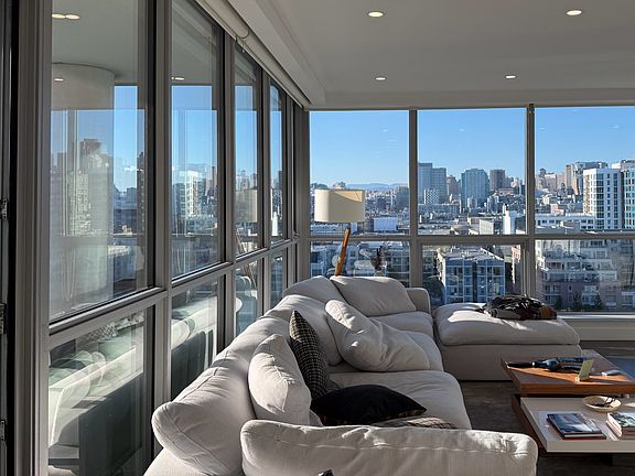 Welcome to Arden Residence 1205 (1,555 sq feet) is a corner unit. Wrap-around views from Twin Peaks to the Bay Bridge. Mission Bay's most coveted luxury community. This bright and expansive condo showcases floor-to-ceiling windows framing tranquil water and skyline views, and offers a seamless blend of modern sophistication and comfort. Massive corner balcony facing city skyline and sunsets. Another private balcony off the guest bedroom.