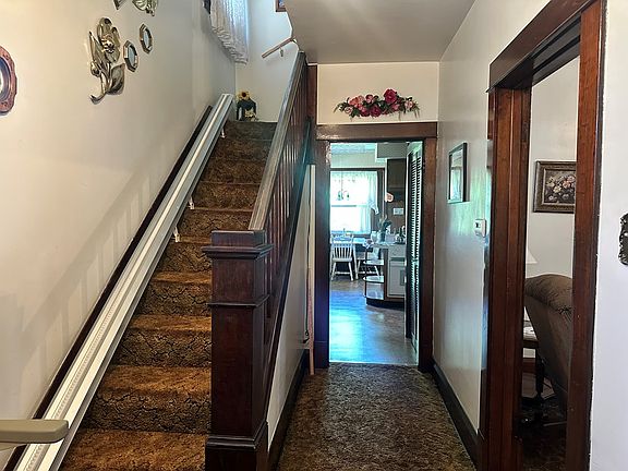 Welcome to this 2 bedroom, 2 bathroom home, brimming with timeless charm. This property offers picturesque views of the river from the cozy breakfast nook off of the kitchen. The house provides ample storage with a pantry in the kitchen, a storage closet upstairs and downstairs, and 2 cellar style storage rooms in the full basement. The master bedroom features 2 walk-in closets. The living room has a charming tile fireplace with a gas log. You can also step into the outdoor oasis with a beautiful lawn and covered pavilion on the river.