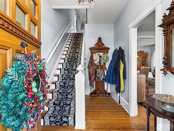 What a treat! Nestled in Tacoma’s Stadium North Slope, this historic Victorian Gem, blends classic charm and modern comfort. Character throughout w/ beautiful staircase entryway, grand room w/ cozy fireplace, orig. hardwood flrs, tall ceilings, and smart home upgrade. Flexible layout allows multi-family or rental options. Bedroom on main flr, spacious 3 bedrooms on upper flr, entertaining/flex space on top flr. Chef’s kitchen opens French doors to private backyard w/fruit trees and parking in alley. Tall tree lined streets to nearby Wright Park, trolley, hospitals, shopping, restaurants, and iconic Stadium H.S. Come experience this inclusive, friendly community and welcoming atmosphere of Stadium North Slope for cherished Northwest living!