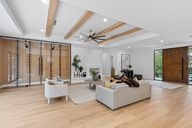 Sparkling poolSleek fireplaceWrap-around patioWide-plank white oak floorsLounge areasElevated lotCommercial-grade appliances