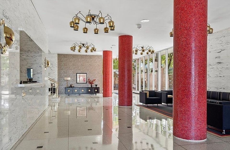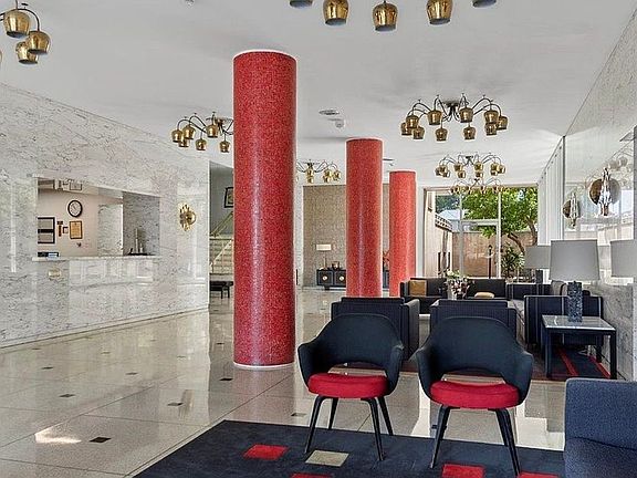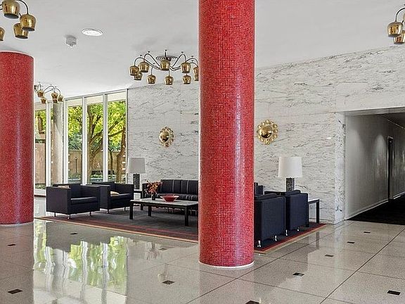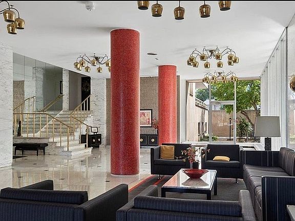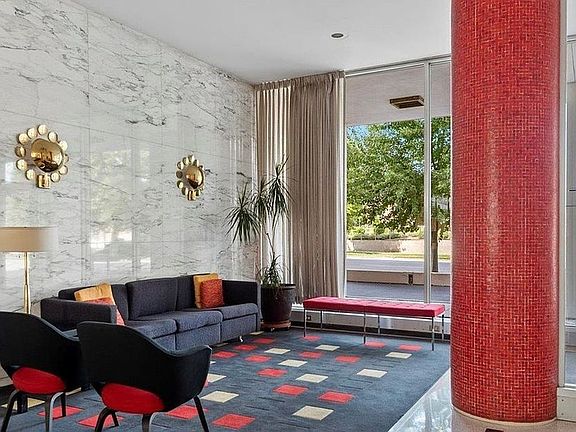 Modern finishesLarge windowsStriking tile backsplashElegant lightingContemporary vanities and fixturesMarble-look flooringPlush carpeting