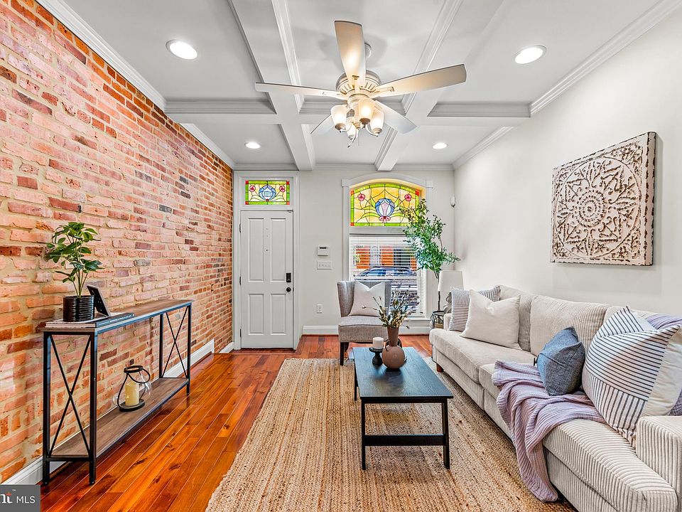 Trust me, you will want to tour this home (& buy this home). It will check every box you are looking for in a city home. Just to name a few: easy off street car parking, roof top deck with true city skyline views, interior exposed brick, exterior brick facade, hardwood floors across both main and upper level, tile floors in the basement (woohoo, no carpet), tall ceilings throughout even in the basement, (you can stand up and stretch your arms straight up), coffered ceiling design in living room, gorgeous updated kitchen and the workmanship is QUALITY -this home was PROFESSIONALLY renovated. Offering 4 bedrooms (2 upstairs and 2 in basement) with 3 full bathrooms (2 upstairs and 1 in basement). The roof top deck has hands down the best city skyline views (and access is NOT through a bedroom). Come check out this very central Canton gem - walkable to everything you can enjoy living in the city. Note: tax record does not account for the addition added to the original structure the true above grade square footage is around 1,700.