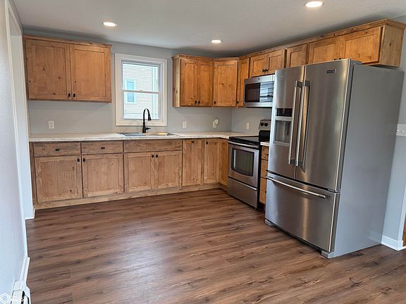 This fully remodeled 2-bedroom, 1-bath home offers 1,098 sq. ft. of fresh, modern living for under $90k! Step inside to find brand-new kitchen cabinets, counters, appliances, flooring, and carpet throughout. The bathroom has also been completely updated, giving the entire home a clean, move-in ready feel. The sewer line was also replaced in 2022 with PVC all the way from the house to the street. Upstairs you’ll find both bedrooms, while the main level features a convenient dedicated laundry/mudroom. Sitting on the edge of town, this home offers extra privacy with the small-town charm of Iowa Falls just minutes away. Whether you’re looking for your first home, downsizing, or simply want an affordable option that’s already been updated from top to bottom—this one is a must-see!