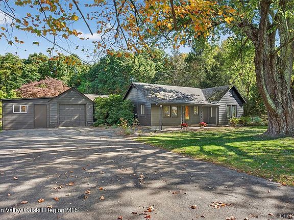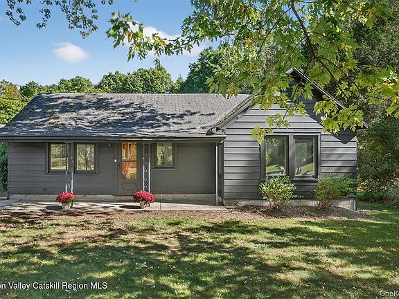 Welcome to your private Hudson Valley retreat— where modern living meets small-town charm. Step into a light-filled open-concept living area with vaulted ceilings, exposed beams, and large picture windows that bring the outdoors in. The seamless flow between the living room, dining area, and kitchen creates a warm, inviting atmosphere perfect for gathering with family and friends. The modern kitchen opens directly onto a spacious back deck through sliding glass doors, extending your living space outdoors. Overlooking an in-ground saltwater pool, this backyard oasis is ideal for entertaining, relaxing, and enjoying long Hudson Valley summers. Inside, you'll find two well-proportioned bedrooms and a full bath, plus a versatile extra room that can serve as a home office or guest space. With its thoughtful layout, the home adapts effortlessly to your lifestyle — whether you're seeking a weekend escape, a primary residence, or a flexible live-work environment. The fenced backyard provides plenty of privacy and room to roam, while the property's rear border meets 80 acres of protected conservation land, ensuring your serene wooded backdrop will remain untouched. Living in Tillson means being part of one of the Hudson Valley's most beloved communities. Nestled between Rosendale and New Paltz, this vibrant small town is known for its artistic spirit, historic charm, and easy access to outdoor recreation. For commuters and weekenders alike, Tillson provides easy access to the NYS Thruway, and the Trailways bus station offers direct service to Manhattan. Outdoor enthusiasts will love being close to the Shawangunk Ridge, Minnewaska State Park, and Mohonk Preserve, with world-class hiking, rock climbing, and breathtaking views just a short drive away.