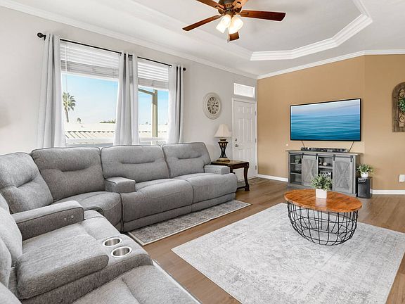 Beautiful 2016 Manufactured Home in a Desirable Adult Community- Visa CA. Welcome to this impeccably maintained 2016 manufactured home located in a highly sought after 55+ community in Vista California. This home offers the perfect blend of comfort, convenience, and low maintenance living. Situated in a prime central location, residents enjoy easy access to public transportation, nearby shopping and dining, and quick freeway access. Ideal for getting around North County and beyond. inside, the home features a spacious 3-bedromm, 2- full bath floor plan, designed for privacy living. The main living area features attractive laminate flooring, while all bedrooms are comfortably carpeted. A full-size washer and dryer are included, along with upgraded stainless steel appliances that make the kitchen shine. Step outside to a welcoming front covered porch, perfect for your morning coffee or evening relaxation. The exterior is finished w/ durable, low maintenance Hardi Board siding. The fully fenced private side yard boast turf landscaping for year-round greenery. Additional highlights include a covered carport and storage shed, offering plenty of space for tools, hobbies, and seasonal items. This is a wonderful opportunity to own a turnkey home in a maintained senior community in Vista. Home is move is move in ready and waiting for its next owner. Please call for your private showing.