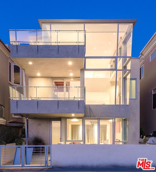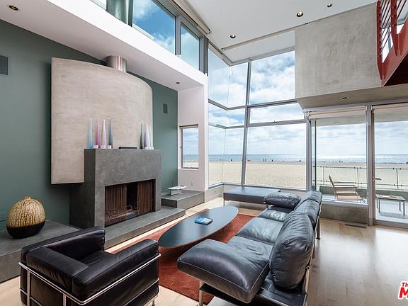 Located on The Strand in picturesque Hermosa Beach, this contemporary three-level home offers the very best of beachside living. The 3000+ sq ft, 3 bed, 4 bath home features sleek concrete, glass, and steel design that enables the home to fill with natural light on every level. An elegant main level offers a large chef's kitchen perfect for hosting large groups. The luxurious top-floor master suite has a fireplace, large walk-in closet, office area, private balcony, and spa-like bathroom with double showers and a steam room. A first level guest bedroom is used as a theatre and provides space for an extended family room. Formal dining and living rooms accompany the large beach level patio that is steps away from the sand. The home is wired for sound and a home theater. Just minutes from the Pier, village shops, and restaurants, this beachfront location has it all.