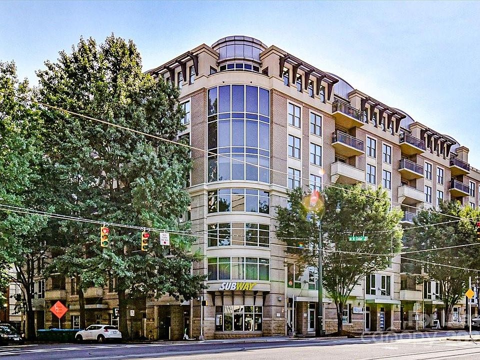 This FURNISHED Uptown Charlotte condo combines comfort and convenience in a prime location. The open floor plan features a spacious bedroom, plenty of natural light, a functional kitchen with black appliances and an additional bedroom/work space. Enjoy the ease of in-unit laundry and relax on your private balcony overlooking the pool area. The secure building offers peace of mind along with an assigned parking space. Perfect for Johnson and Whales student or corporate business travel. Community amenities include a pool, clubhouse, outdoor courtyard and rooftop terrace. Just steps from Bank of America Stadium, Truist Field, Romare Bearden Park, and Uptown's restaurants and nightlife, this home offers the best of Charlotte living. Water, garbage and gas included in rent. Lease includes one parking pass.