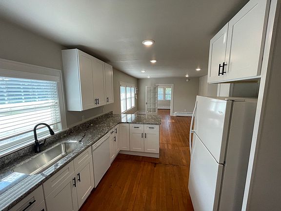 Kitchen is large and the main attraction with gorgeous granite countertops and tons of cabinets and brand new appliances. Original hardwood floors were professionally refinished and are throughout the apartment. Unique hexagon style tile in bathrooms.