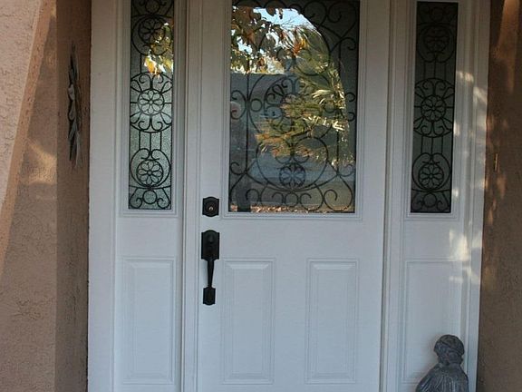 Wowee!! What a beautiful house! From the front door to the backyard, this 3 bdrm, 1 ¾ bath house is truly gorgeous! Gracious entry opens to the left to living room with fireplace and straight ahead to the dining room with spectacular view of fully landscaped back yard. Kitchen with large shaded window boasts newer quartz counter tops and white cabinets. Down the hall to the right are the secondary bedrooms, newly rehab full hall bath and spacious master suite with large closet, view of back yard, lovely tile shower, refinished cabinets and solid surface counter top. Other updates include newer paint, inside and out, new dual pak, windows, water heater west front fence, flooring, kitchen counters , new interior and front door, attic insulation, outdoor lighting, patio, RV pad, slab on east side of house and block wall trim and shed. Super RV access and parking. Xeriscaped front yard. 2 car attached garage. Fountain in back, Greek goddess, bamboo curtains and motor home are not included.
