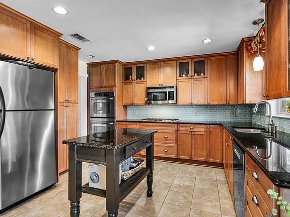 Energy efficiency meets sustainability with Tesla solar panels that help reduce monthly utility costs. Outside, the circle driveway and attached garage provide ample off-street parking. The large backyard, shaded by mature trees, offers plenty of space for outdoor living, play, or gardening.