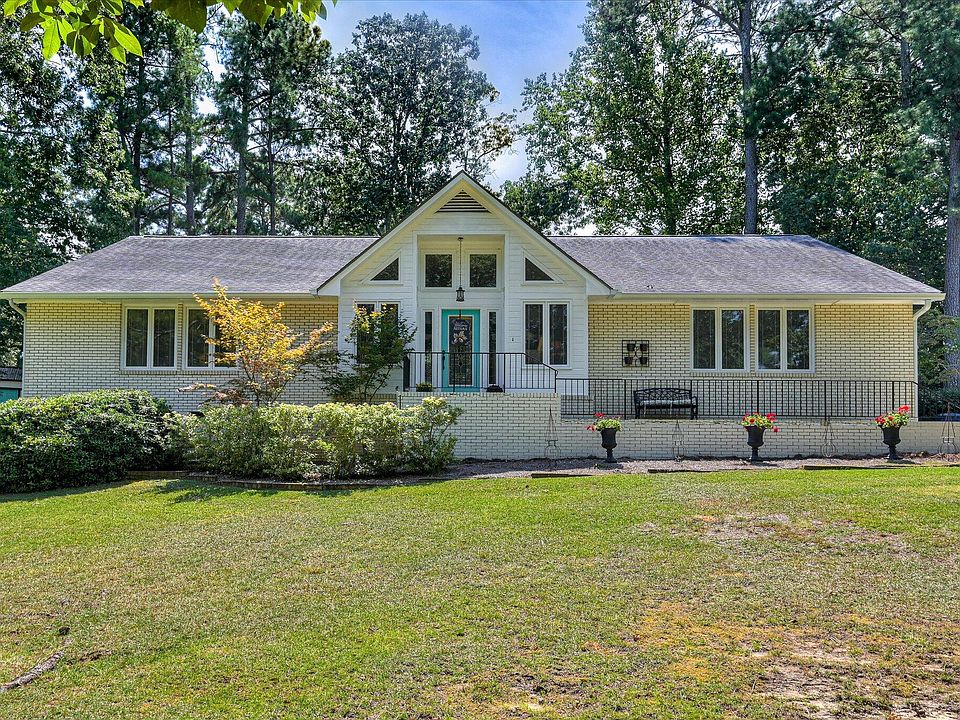 Situated in the Houndslake neighborhood, the expansive, beautifully landscaped yard welcomes you home to 718 Winged Foot Drive. Upon entering the home, the open concept living and dining rooms boast gorgeous, oak hardwood floors, cathedral ceilings with exposed wood beams, a 2-way fireplace, and custom windows with built-in blinds which fill the rooms with natural light. The kitchen is an entertainer's dream! Offering a custom tile backsplash, duel-fuel range, and extensive counter and cabinet space, get-togethers and holiday meals will be a breeze in this kitchen! Speaking of breezes, the back patio, accessible by the dining room, is a wonderful place to enjoy an afternoon lunch or evening meal with the cool autumn breezes approaching! There are two guest rooms which share a hall bathroom with linen closet, and the large master suite offers 2 walk-in closets and an adjoining master bathroom. There are so many storage options with this home, with an attic accessed in the 2-car garage, an attached storage shed outside the garage doors, and additional 10x16 shed conveying, storing all your upcoming Christmas/Holiday decorations will be no trouble. This home has been meticulously maintained and is ready to move on to the next chapter of ownership. Conveniently located near Aiken's Southside dining and shopping.