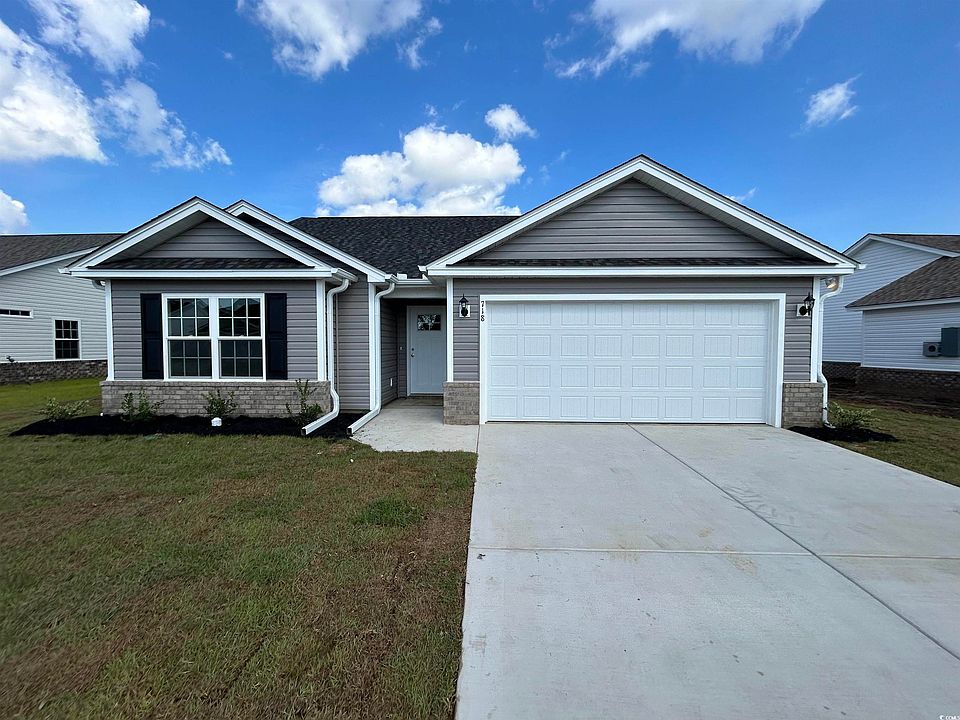 Woodside Crossing is proud to offer the Sewee floor plan! You will enjoy 3 bedrooms all on one level and a light and bright kitchen, dining area, and family room that incorporates an open design. This home features a large work island, granite countertops, a Tankless Hot water Heater, Gas Range, and Gas Heating! Designer kitchen featuring stainless Steel appliances, profiled Aristokraft™ Shaker styleCabinets with upgraded hardware, granite countertop package with polished stainless steel sink, durable waterproof laminate flooring in living areas with stain resistant carpet in bedrooms, interior trim package includes window casings and stool for durability and appeal, relaxing baths with cultured marble countertops with integral bowl; executive height vanities in all bathrooms; elongated toilets; contoured fiberglass shower and tub units, maintenance free exterior features such as premium vinyl siding, soffits and fascia; and high performance GAF™ Architectural shingles. Convenient amenities such as a community pool/cabana area, a bark park, and walking trails are located in the neighborhood. Woodside Crossing is located on Four Mile Rd just 10 minutes to downtown Conway and minutes from Hwy 22 with quick access to Myrtle Beach, Little River, North Myrtle Beach, etc. Building lifestyles for over 35 years, we remain thePremier Homebuilder of new residential communities and custom homes in the Grand Strand and surrounding areas. In 2022, 2021, and 2023 we received the Best Home Builder award from WMBF News Best of the Grand Strand. We want you to experience the local pride we build today and every day in Horry and Georgetown Counties. This community will feature a swimming pool, cabana, and dog park for residents to enjoy! We are excited to welcome you home at Woodside Crossing! Photos, colors, and layouts are for illustration purposes only and can vary from home to home. Customization may be possible – call listing agent for availability. Square footages are approximate.