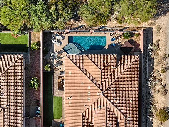 Built by Mattamy in 2017, this stunning Painted Sky floor plan is tucked away on a premium cul-de-sac end lot, providing the utmost in privacy and comfort. This home boasts luxurious standard upgrades along with an impressive 13x10 enclosed Arizona room featuring precision anti-glare casement windows.Enjoy the breathtaking Northern and Southern exposure, which opens up to captivating views of the mountains, desert, and sunsets. Unwind in the stylish heated saltwater pool, elegantly surrounded by Kool decking and lush synthetic grass, or indulge in the Max Vita ''Prestige'' above-ground spa - perfect for relaxation.Additional upgrades enhance your living experience, including Plantation Shutters, a Titan Security screen door, Solar Tubes for natural lighting. All in a Gated Community. In addition the 3 car tandem car includes a sink and overhead storage..