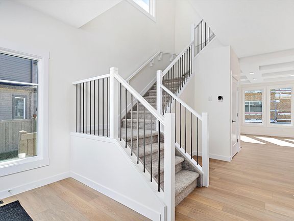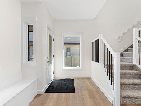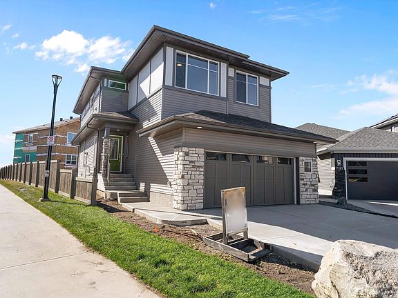 Discover your dream home in Crystallina! This brand new 2,164 sq ft two-storey Tofino model home built by City Homes, is loaded with over $40,000 in upgrades, situated in a pie shape lot, and ready for immediate possession! The main floor impresses with its open design, upgraded kitchen and appliance package, dining area that steps out to the included rear deck, and a spacious living room highlighted by a striking 60” electric fireplace. Upstairs offers a bright central bonus room with oversized slider window, a private primary suite with walk-in closet and ensuite with freestanding tub, plus two spacious additional bedrooms. Extras you’ll love: elegant spindle railing, enlarged garage for added parking space, separate side entrance with suite potential, and basement rough-ins for laundry and sink. Situated in a family-friendly community close to schools, shopping, parks, and the Henday — this home combines elevated living with sophisticated style. Don’t miss this move-in ready opportunity!