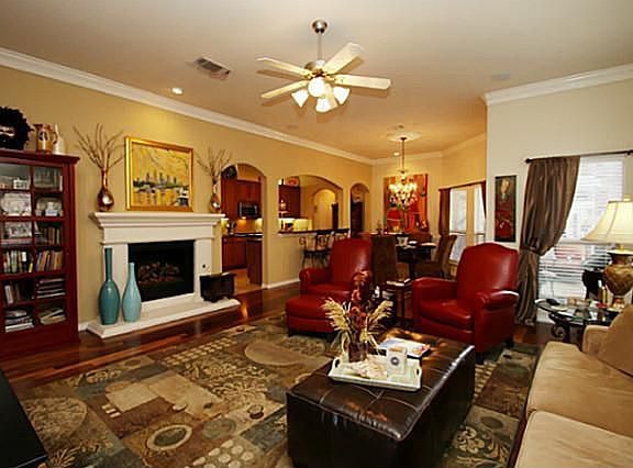 INCREDIBLE GARDEN HOME - Too many extras to list! Raised stone flower beds & stone walkway. Warm hardwoods, cast stone FP, upgr lighting & fans, custom paint, granite, gas cooktop, huge walk-in pantry, under & above counter lighting, special doors on pantry & utility. Split BR's, cr molding, floored attic space, upgr sec sys. Outdoor courtyd features extended covered patio, lush landscaping, fountain, BonB stained custom fence, outdoor lighting.