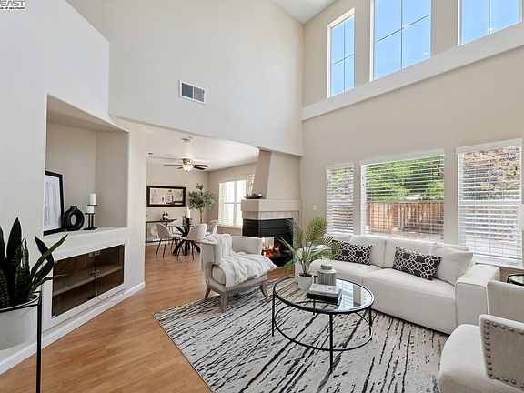 Beautiful 3BD/2.5BA home on a PREMIUM lot with no rear neighbors and north-facing entry in the desirable Cedar Bridge community. Soaring ceilings and abundant natural light welcome you into a spacious layout featuring new carpet, a remodeled kitchen with granite counters, custom backsplash, stainless steel appliances, and breakfast bar. NEWER dishwasher, washer & dryer, and water heater. The open-concept dining area flows to a private backyard with stamped concrete patio—perfect for entertaining. Living room features two-story ceilings and a two-way fireplace shared with the family area. Upstairs includes a serene primary suite with backyard views, plus two additional bedrooms connected by a Jack & Jill bath. Attached 2-car garage with built-in cabinetry and in-unit laundry for added convenience. Located near top-rated schools, parks, shopping, and all the best of San Ramon. A must-see home in a premium location!