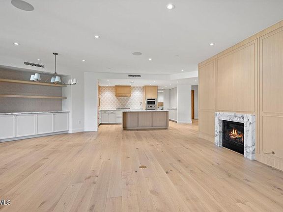 Statement fireplaceCovered balconyImpressive primary suiteIsland kitchenBeautiful lightingBlonde wood flooringCustom millwork