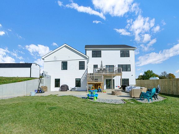 This spacious six-bedroom, four and a half bathroom home offers approximately 4,304 square feet of living space. The property features a balcony, patio, den/office, finished basement, first-floor primary bedroom, first-floor laundry, walk-in closets, and an open-concept layout. The primary bathroom includes a walk-in shower and soaker tub. The secluded location provides a peaceful setting.
