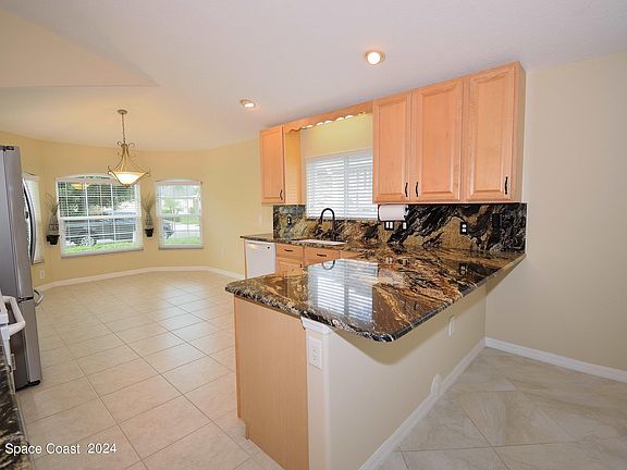 Discover West Viera's premiere 55+ gated community, HERITAGE ISLE. This home is move-in ready with a bright & open floor plan. The spacious kitchen offers bay windows, eat in kitchen, ample counter space, and large pantry. It has matching granite counters in the kitchen and both bathrooms along with new carpet in all three bedrooms. A newer roof 2018, A/C 2022, hot water heater 2023, and an epoxy garage floor. Master bathroom features large walk-in shower with double sink vanities. 2nd bathroom features single sink vanity, full bathroom with tub. It has accordion hurricane shutters along with several impact windows, You will have peace of mind knowing that the original owners have a home warranty that extends through February 2026 and will transfer at no cost to the new owners. It is on a premium 74' lot with beautiful landscaping. This community offers exterior maintenance of the house (painting every 7 years) & lawn service. The 21,000 sq. ft. clubhouse (the largest in Brevard County) offers something for everyone. From outside activities including tennis, bocce, shuffleboard, pickleball to state-of-the art workout facility, to inside activities including exercise classes, yoga, line dancing, card games, bingo etc. You can have drinks, lunch or dinner at the Isle Bar & Grill. Living in Heritage Isle is a senior's dream come true.