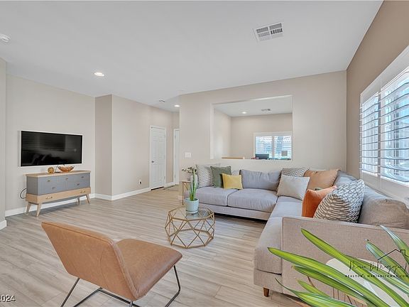 This rare single-story 4 bedroom home is located in the rapidly growing, master-planned community of Mountain’s Edge in Las Vegas. As you arrive, the beautiful accent stone on the front catches your eye. Designed with entertaining in mind, the open floor plan and spacious kitchen make hosting a breeze. Step outside to the pool-sized backyard featuring a lovely covered patio—ideal for outdoor dining and relaxation. The mature landscaping offers charm and privacy, while the low-maintenance yard allows you more time to enjoy life. Inside, the kitchen, flooring, and paint have all been recently upgraded, providing a fresh, modern feel. Nearby, you’ll find parks with playgrounds, water play areas with spray jets, a horseshoe pit, an outdoor amphitheater, walking trails, and picnic areas. The home also features a brand-new air conditioning unit, less than a month old, with a warranty for your peace of mind. Welcome home!