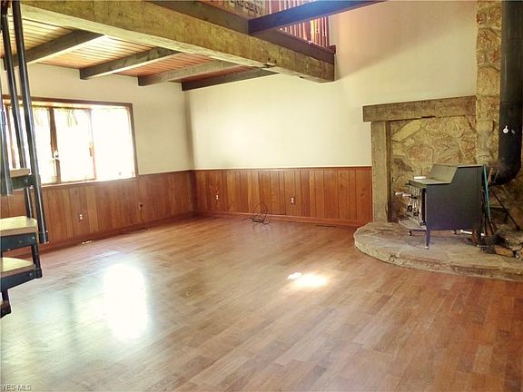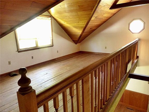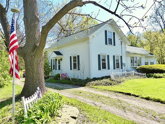 Built in 1900 this colonial farmhouse is full of charm. Located on a wooded 5.47 acres with walnut,chestnut, tulip & flowering fruit trees. 44' x 22' pole barn with parking for 2 cars plus workshop and two generous size horse stalls.Kitchen with island, appliances and bricked corner with WB stove, Baywindow in the breakfast/sun room, hardwood floors in combined formal dining and living room(bow window), tile foyer entrance, step down family room, with wood beams, stone highlight wall with WB stove plus spiral stairs to a cozy wood loft, 17' first floor master w/built in chest & HW floors, second bedroom (or office) off foyer, third guest bedroom with full bath, unfinished basement w/ outside cellar door access, New 30 year roof and gutters w/ice guard in 2018, brick side patio with gas grill, New furnace in 2011, Family size home plus room for a couple of horses. 12 month home warranty, close to Madison Village Square and easy access to Rt 90. A/C being installed in July. Immediate Occupancy. 4 Bedrooms w 2 additional rooms that can be used as office/reading/library/playroom.