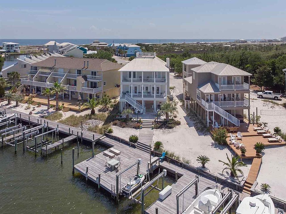Simply amazing waterfront cottage living with dedicated beach access! This adorable updated jewel will not last long! Coastal cottage style, this furnished beach house will exceed all of your expectations. 3BR/3.5 BA with a large open area upstairs currently used as an artist studio. There is a wet bar/kitchenette/coffee bar for your guests to enjoy without the need to go downstairs. Easily converted into an additional bedroom should the buyer need and extra. There is a widows walk on top of the house for star gazing, sunset watching, and 360 degree views of amazing Perdido Key, Ono Island and beyond. The floor plan is open and filled with natural light and the OMG VIEWS! Living/Dining & Kitchen flow for easy enjoyment and entertaining. There is a fireplace for cooler days, up to the minute style touches like shiplap, luxury vinyl wood plank floors, perfect accent lighting. The porches are deep and covered for enjoying the open water views of Old River and the entrance to Perdido Key Coves. The waterfront wharf is off the chain! large pier area for crabbing, fishing or sunning, flanked by a dedicated slip with lift. The wharf is shared with 5 other neighbors who each have thier own slips, there is guest boat parking, a waterfront boardwalk, a swim platform with sundeck too. All this making it possible to watch your kids on the jet skis while you are cooking up gulf seafood on the grill! When you're tired of the inshore activities, you can walk up the street to the beach walkover and enjoy 2 miles of unspoiled Perdido Key State Park! Yes, beach, boating, breezes and all the joy that comes with it! Don't miss this opportunity. Be sure to click on the Virtual Tour to understand just how special this home and location really is. Make your appointment to see today!