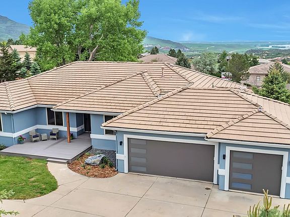 Price Reduced on this stunning remodeled residence nestled in picturesque Roxborough Park! This exceptional home offers a harmonious blend of mountain serenity and breathtaking city views, providing an idyllic living experience. Step inside, and you'll be greeted by an interior that has been meticulously updated to provide a seamless fusion of style and functionality. The open floor plan is designed to maximize space and natural light, along with wood floors and custom lighting throughout, creates an inviting ambiance.  Large windows strategically placed in key areas of the home offer breathtaking panoramic views, allowing you to savor the beauty of Colorado. The living area serves as the heart of the home, providing a warm and inviting space for relaxation and entertainment. High ceilings, tasteful decor, and a cozy fireplace combine to create an atmosphere of comfort and sophistication. The modern gourmet kitchen is equipped with top-of-the-line appliances, sleek cabinetry, and ample counter space with quartz counters and waterfall edges. Whether you're a seasoned chef or simply enjoy cooking for loved ones, this kitchen is sure to exceed your expectations. The main floor office and bedrooms are designed with comfort in mind, offering tranquility. The master suite is a true oasis, complete with its own private balcony, wake up to breathtaking mountain vistas or unwind as the sun sets over the city. The en-suite bathroom features luxurious fixtures, heated floors, a spacious walk-in shower, and a soaking tub. Step onto the expansive deck, where you can soak in the serene mountain views. The full walkout basement offers a game/media room with wet bar, exercise room, 2 additional bedrooms plus a full bath, and 2 storage rooms! The landscaped backyard offers a perfect blend of natural beauty and outdoor living possibilities and the 3 car garage with new doors completes this remodeled Roxborough Home!