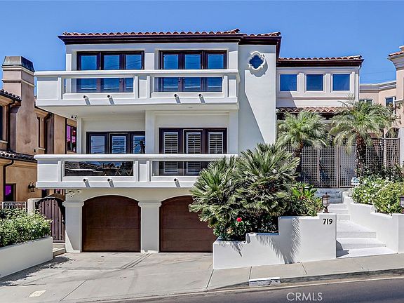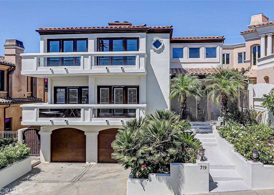 Welcome to 719 11th St, where old world coastal charm meets modern flair in the prestigious Manhattan Beach Hill Section! This playful 5-bedroom, 4.5-bath gem is just a flip-flop stroll away from the beach, iconic Manhattan Beach Pier, and bustling downtown. Step inside and up the grand spiraling hardwood stairs to the top floor—an entertainer’s paradise, with panoramic views towards Palos Verdes and Catalina Island. The expansive living room has a built-in granite wet bar that positively begs for cocktail parties, a scenic balcony for those “wish you were here” Instagram shots, and a dual-sided fireplace to keep the vibe cozy whether you're lounging or dining in the breakfast nook, that connects the kitchen in a clever design flourish to the living room. The open-plan kitchen is your culinary playground, complete with gleaming stainless appliances, gorgeous new quartz countertops and lustrous custom blue lacquered cabinets, a sprawling island for all your chefly endeavors, even two sinks. And the kitchen overlooks the Family Room through a large opening giving the home a certain airiness and connectivity, without sacrificing intimacy. The formal Dining Room is open and bright with space for a table of 12! The bedroom on this floor is the size of a dormatory with an ensuite bath - perfect as a bedroom or playroom - its the size of 2 normal bedrooms. The middle, entry, level has an opulent Primary Suite at the front of the home, overlooking dreamy ocean views from the bedroom as well as the private balcony. Imagine snuggling in the sitting area in front of the fireplace. The primary bath has a large spa tub, separate shower and has a beautiful blue and white stone palate. There is plenty of storage in the walk in closet. A lavishly outfitted office awaits with walls of bookshelves, with French Doors leading to a flagstone patio and grotto-like spa and water feature. Two massive bedrooms also service this floor with a comfortable bath in between. There is a 2-car garage accessed off the back alley, which has been converted into a gym and playroom (easily reconverted). There is a second 2-car garage on the basement level below, accessed from the front. The 5th bedroom is on this level as well, serviced by a hall bath. a 3-stop elevator makes traversing three stories easy, and the laundry room has lots of storage, folding space, and a laundry sink. The movie/game room rounds out the floorplan of this incredible home that’s as fabulous as you are.