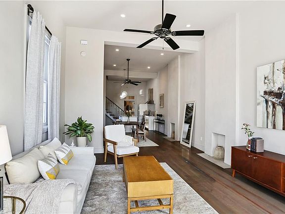 Sleek, income-producing Irish Channel Greek Revival double conveniently located just 3 blocks from Magazine! Contemporary design w/ 2bed/2bath on each side. Well-lit open floor plan features an oversized dining island, marble countertops, high-end appliances, and hardwood flooring throughout. Upstairs primary features a beautiful soaker tub and ample living space. Enjoy a large, lush backyard and stunning front porch. Live on one side and rent out the other. Walk to Mardi Gras parades, restaurants & shops.
