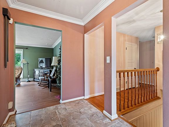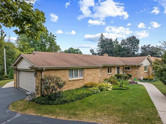 This home boasts beautiful gardens surrounding this 2,400 sq ft all brick ranch. Large living room with plaster crown molding and wall of windows overlooking the back yard. French doors lead you to the quaint dining room with built-in cabinets and display shelves. Nicely equipped kitchen with newer birch cabinets, granite counters, tile flooring and backsplash and stainless appliances. The updated main bath with jacuzzi tub, shower, separate water closet also has a block window to add a lot of natural light. This main bath is connected to the master bedroom suite with double closets and closet organizers. Two other bedrooms complete the main floor. The fully exposed lower level features a family room with gas fireplace and built-in shelving, 2 bonus rooms, full bath, laundry area, workshop and lots of storage including a storm shelter. Circular driveway to the 2 car side load garage. Enjoy the deck and private back yard as this home backs up to Aldeen Park.