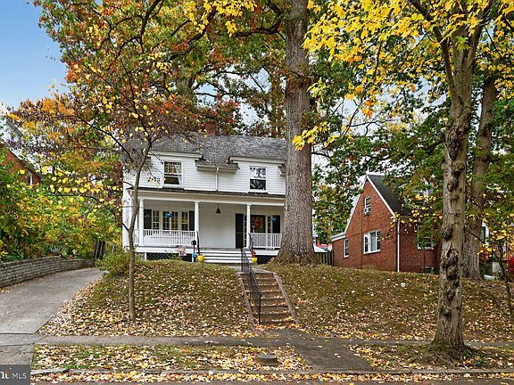 A nature lover’s delight! Located near Gwynns Falls Leakin Park, this home offers access to miles of trails, playgrounds, and green space, while remaining close to commuter routes and neighborhood conveniences. This charming Colonial is in the desirable Historic Hunting Ridge Community and features 4 bedrooms, 2 full baths and 1 half bath(rough-in only). Thoughtfully cared for and tastefully updated with refinished original hardwood floors, Quartz countertops in remodeled kitchen, and dual HVAC system with 2 thermostats. Additional features include an antique clawfoot tub, statement tile flooring in both full bathrooms, timeless soft-lined curved ceilings leading to the upper level, partially finished basement and a wood-burning fireplace for cozy MD winters. The house has an expansive front porch, freshly stained wood deck/patio, oversized lot, 4+ car drive way, and a detached garage. All Electrical, HVAC, and Plumbing was brought up to code at the time of seller's purchase. ***CHAP 10-year tax credit granted for reduced Baltimore City taxes through 2031! See tax record.