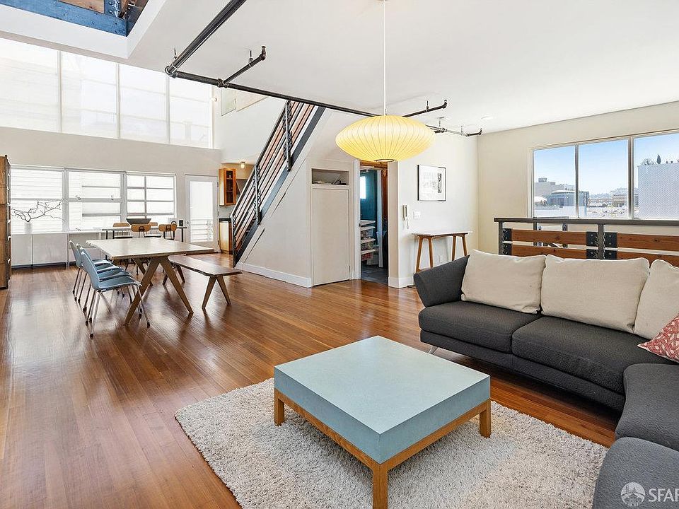 Discover the perfect blend of modern style and flexible living at 719 Clementina in San Francisco's thriving SOMA district. This expansive 2,175 square foot loft, complemented by a 595 square foot terrace, boasts double-height ceilings that enhance its open, airy feel. The main floor features a contemporary kitchen with a gas range and stainless steel appliances, a dining area with a balcony, a cozy living space with a fireplace, a flexible workspace, an office or flex room, a full bath, and a laundry room. The upper-floor unit provides breathtaking cityscape views and a lofted primary suite with generous storage, fireplace, an en-suite bath, and direct access to the grand terrace. Perfectly situated in a light industrial area, this live-work loft offers unparalleled convenience for tech-forward startups and traditional businesses alike. The vibrant SOMA neighborhood, known for its eclectic mix of dining, entertainment, and cultural attractions, is at your doorstep. With two-car parking and a design catering to both home and work needs, 719 Clementina is ideal for those seeking voluminous, open-space living with the flexibility to thrive in San Francisco's most exciting district.