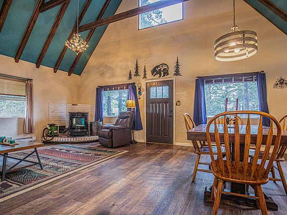 This charming mountain cabin is perfect for those seeking a simpler way of life. With vaulted ceilings, large open great room, and a beautiful view of the evening sunsets, you’ll feel like you’re living in a dream! Located just a half mile from "downtown" Cloudcroft and within minutes from The Lodge. This cabin allows you to be off the beaten path. Once inside you are greeted with vaulted ceilings and tons of natural light. The open concept living, dining and kitchen allows for easy entertaining. The living room has a pellet stove installed for those chilly mountain mornings. The kitchen has a great layout allowing for plenty of room and also has a breakfast bar for convenience. There are two bedrooms located on the main floor for easy main floor living. Both bedrooms are very large to accommodate king size beds or a combination of beds. There is a full bathroom located on the main floor as well. There is a laundry room also on the main floor. As well as access to the backyard. Upstairs is the 3rd bedroom along with a half bath. There is a small deck off this bedroom which is the perfect spot to enjoy that morning cup of coffee. Outside there is a fenced in backyard with a privacy screen installed which would be the perfect place for a picnic table. There is great parking out front along with a small deck. The home also has a whole home generator as well. This home is just waiting for someone to call it home! Call today!